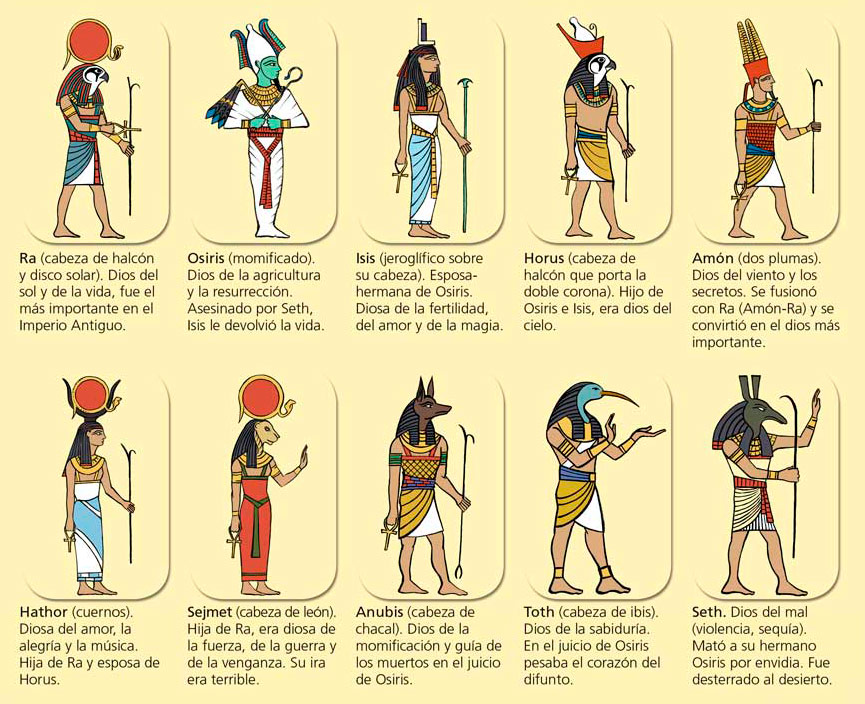 Algunos de los dioses más importantes del antiguo Egipto fueron: